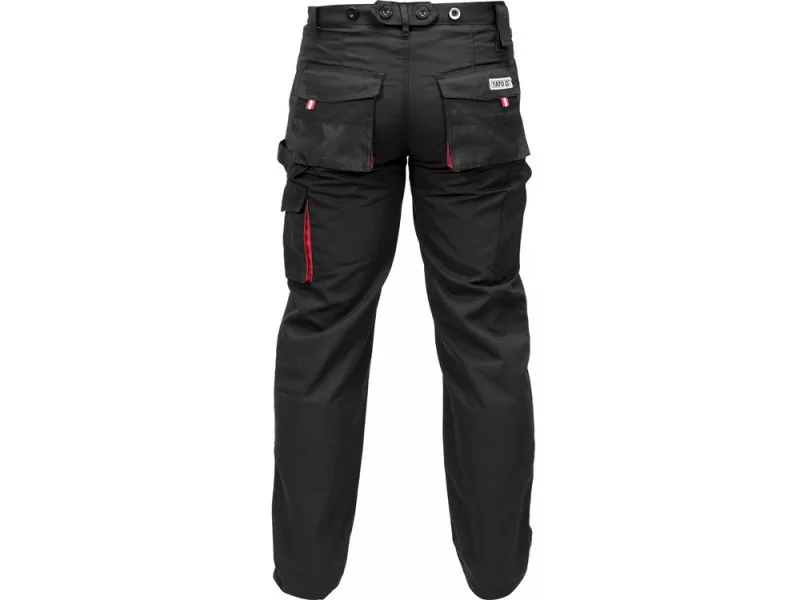 Work pants with nine pockets, including six with Velcro closure and special pockets for knee pads.