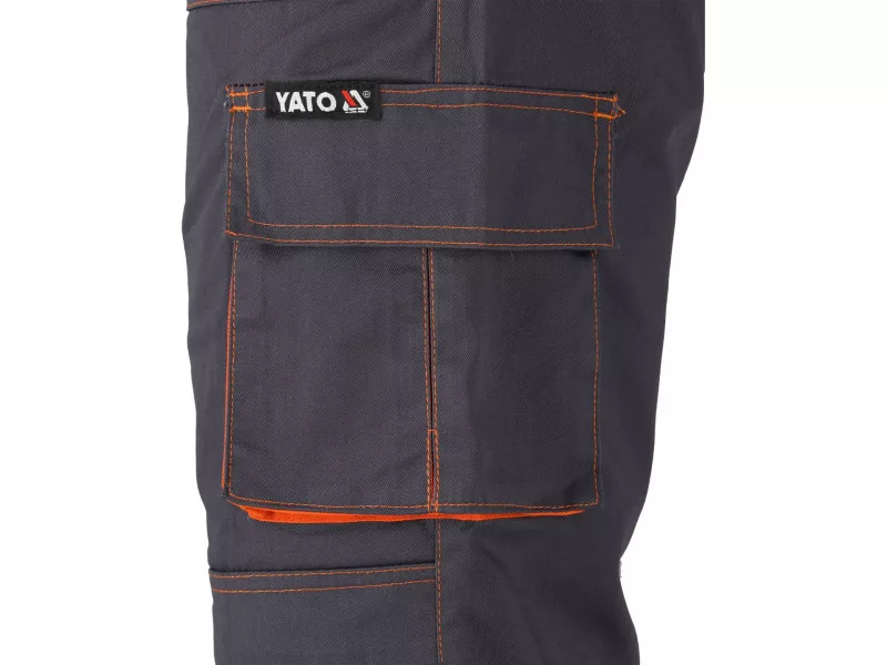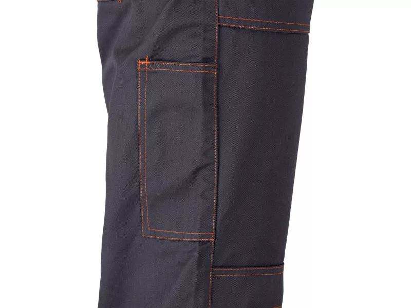 Working pants on braces such as gardens with seven pockets, including four with a Velcro fastener and special pockets for nutrients. The main material is a mixture of cotton with polyester in the right proportions. This solution allows you to use the strengths of both materials, including Increased tear resistance and good air circulation. Basic data: material: 35% cotton, 65% polyester weight: 245 g/m² work organization: on the breast two pockets with a flap fastened with Velcro below the belt at the front two main pockets with reinforced bottom from the inside with an additional layer of material on the left leg large pocket pocket With a flap, a narrow pocket fastened on the right leg, e.g. for a wallpaper knife on the back below the waist, a large pocket with a flap fastened with Velcro on the knees for the destiny for the nutritional inserts, e.g. 74595 Additional information: double seams in places exposed to tear of the bodies Fastened with buttons, waist width adjustment with buttons in the waist. Sewn gum tightening fabric braces with a flexible tape at the back solid fasteners with adjustable length of the brush length meet the requirements of regulation (EU) 2016/425 for work and category clothing.