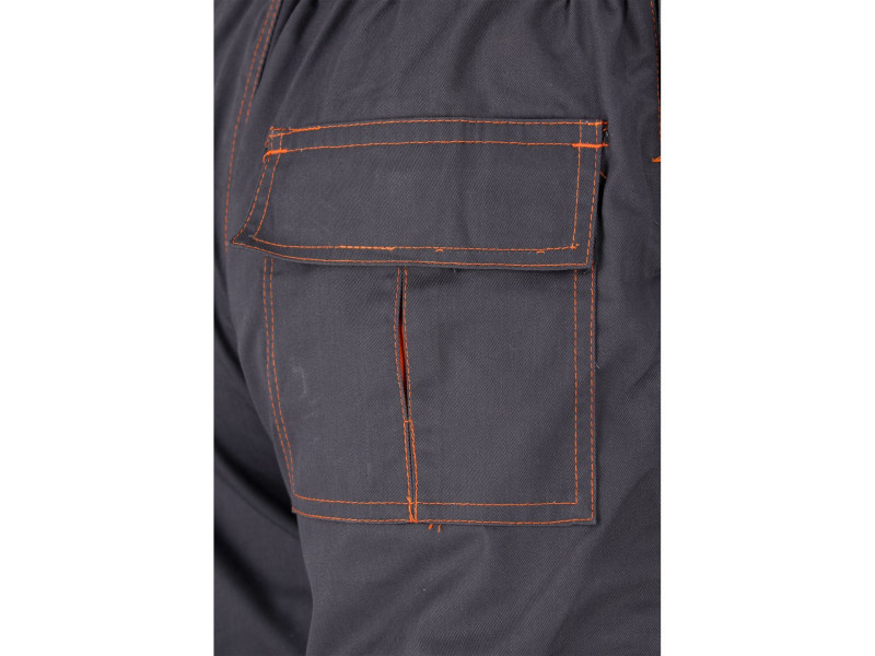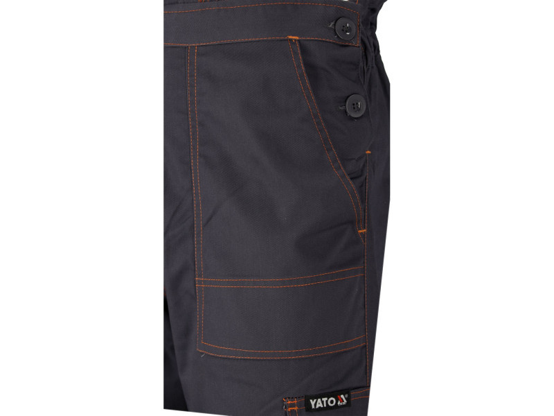 Working pants on braces such as gardens with seven pockets, including four with a Velcro fastener and special pockets for nutrients. The main material is a mixture of cotton with polyester in the right proportions. This solution allows you to use the strengths of both materials, including Increased tear resistance and good air circulation. Basic data: material: 35% cotton, 65% polyester weight: 245 g/m² work organization: on the breast two pockets with a flap fastened with Velcro below the belt at the front two main pockets with reinforced bottom from the inside with an additional layer of material on the left leg large pocket pocket With a flap, a narrow pocket fastened on the right leg, e.g. for a wallpaper knife on the back below the waist, a large pocket with a flap fastened with Velcro on the knees for the destiny for the nutritional inserts, e.g. 74595 Additional information: double seams in places exposed to tear of the bodies Fastened with buttons, waist width adjustment with buttons in the waist. Sewn gum tightening fabric braces with a flexible tape at the back solid fasteners with adjustable length of the brush length meet the requirements of regulation (EU) 2016/425 for work and category clothing.