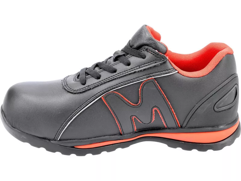 The half-boots are metal-free. Both the anti-puncture insole and the rubber sole are flexible and - unlike shoes with a traditional PU sole and steel insole - do not restrict midfoot flexion. The natural grain leather upper is decorated with reflective lines to improve the wearer's visibility.
