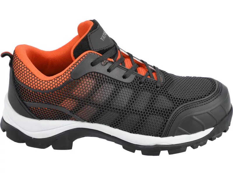 The shoes do not contain metal. Both the anti-puncture insole and the sole are flexible and, unlike shoes with a traditional PU sole and steel insole, do not restrict midfoot flexion. The thermoplastic KPU upper not only provides a sporty look but also high resistance to cracking and abrasion. The mesh structure combined with the lining material ensures breathability and high comfort during long hours of work.