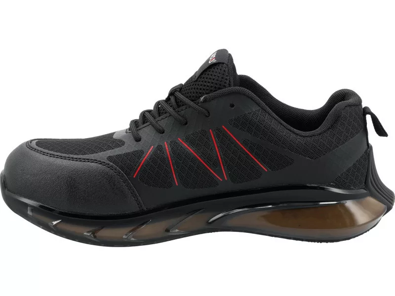 Innovative three-material sole. The outer, semi-transparent part made of TPU not only has aesthetic value but also functions as an air cushion around almost the entire perimeter. It guarantees increased comfort while working in non-standard positions. The inner part made of responsive EVA foam fully supports the foot and effectively absorbs vibrations. The slip-resistant tread made of rubber improves stability on surfaces covered with detergents as well as oily substances, confirmed by the receipt of the SR certification. Enhanced user comfort is complemented by an innovative popcorn design insole.
