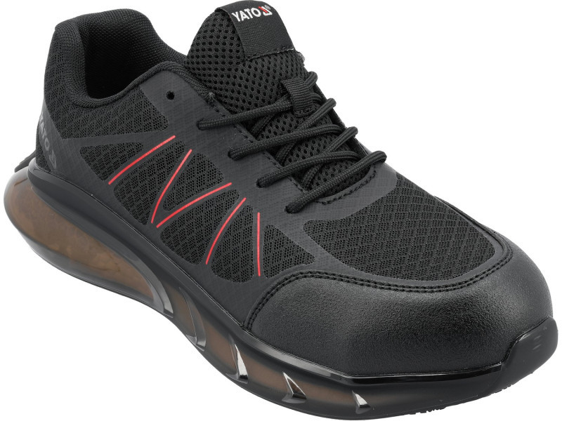 Innovative three-material sole. The outer, semi-transparent part made of TPU not only has aesthetic value but also functions as an air cushion around almost the entire perimeter. It guarantees increased comfort while working in non-standard positions. The inner part made of responsive EVA foam fully supports the foot and effectively absorbs vibrations. The slip-resistant tread made of rubber improves stability on surfaces covered with detergents as well as oily substances, confirmed by the receipt of the SR certification. Enhanced user comfort is complemented by an innovative popcorn design insole.