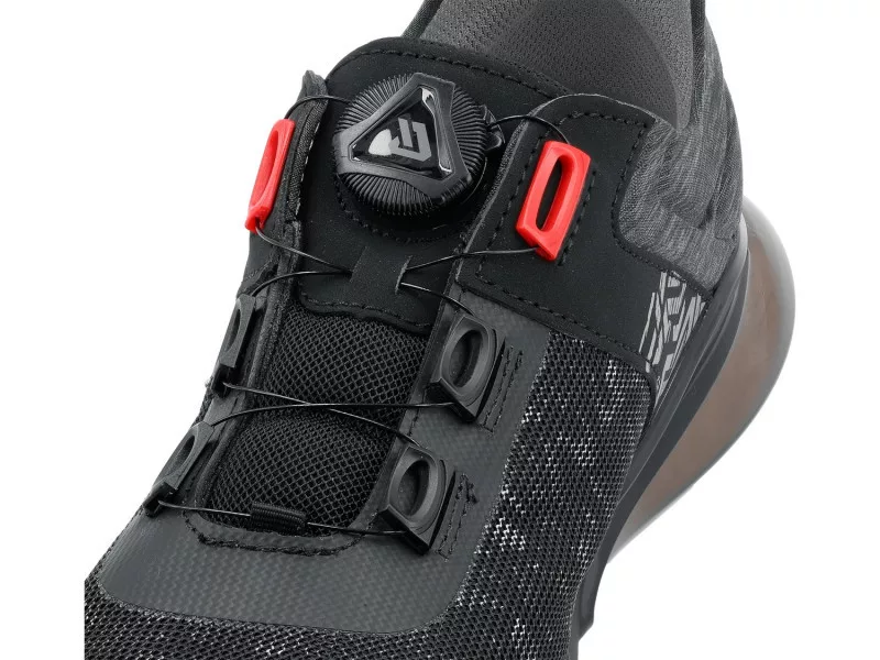 The upper is made of polyester fabric with a TPU layer over the toe area and an innovative integrated heel made of PU foam and thermoplastic PU covered with polyester fabric. This solution is found in top-class sports shoes. The heel and front of the upper are separated by a strap made of microfiber synthetic leather. The performance character is also enhanced by semi-automatic laces with a dial.