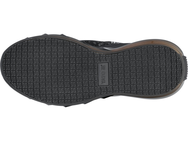 Innovative three-material outsole. The outer, semi-transparent part made of TPU not only has aesthetic qualities but also serves as an air cushion around almost the entire perimeter. It guarantees increased comfort while working in non-standard positions. The inner part made of responsive ETPU supports the foot entirely and excellently absorbs vibrations. The slip-resistant tread made of rubber improves stability on surfaces covered with detergents as well as oily substances, which is confirmed by receiving the SR certification. Enhanced user comfort is complemented by an innovative popcorn design insole.