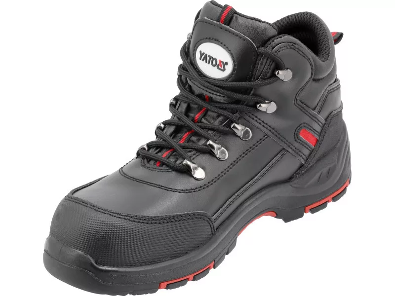 The PARAN S3 series of lightweight work boots is a model with an impact-resistant composite toecap, a flexible anti-puncture insole. The sole is dual-material with a non-slip rubber tread with special cuts and inserts made of durable PU in red. Among other things, the shoes offer increased walking comfort thanks to an insole that adjusts to the foot.