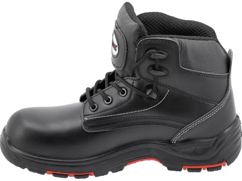 The lightweight work boots from the TARAN S3 series are a model with an impact-resistant composite toecap, a flexible anti-puncture insert and a two-material sole with a non-slip rubber tread with special cuts and inserts made of durable PU in red. Among other things, the shoes offer increased walking comfort thanks to an insole that adjusts to the foot.