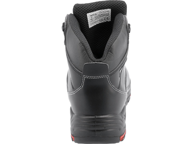 The lightweight work boots from the TARAN S3 series are a model with an impact-resistant composite toecap, a flexible anti-puncture insert and a two-material sole with a non-slip rubber tread with special cuts and inserts made of durable PU in red. Among other things, the shoes offer increased walking comfort thanks to an insole that adjusts to the foot.