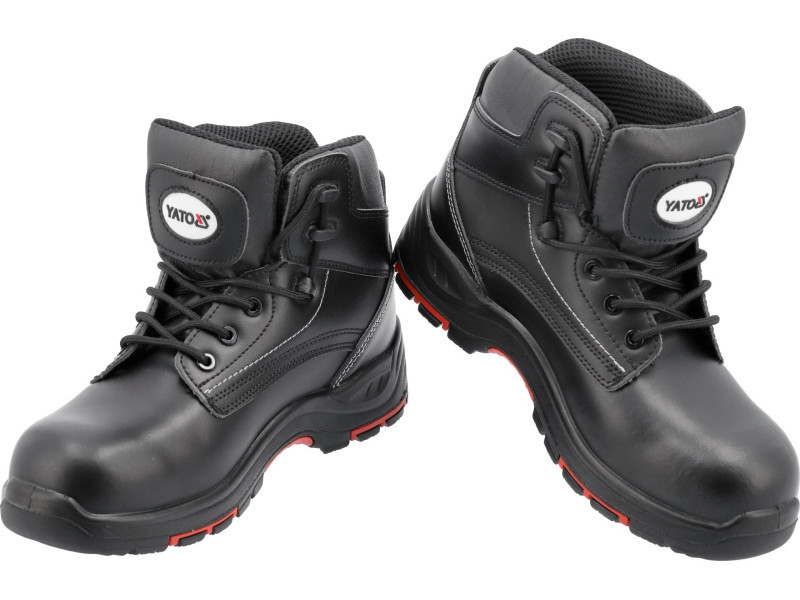The lightweight work boots from the TARAN S3 series are a model with an impact-resistant composite toecap, a flexible anti-puncture insert and a two-material sole with a non-slip rubber tread with special cuts and inserts made of durable PU in red. Among other things, the shoes offer increased walking comfort thanks to an insole that adjusts to the foot.