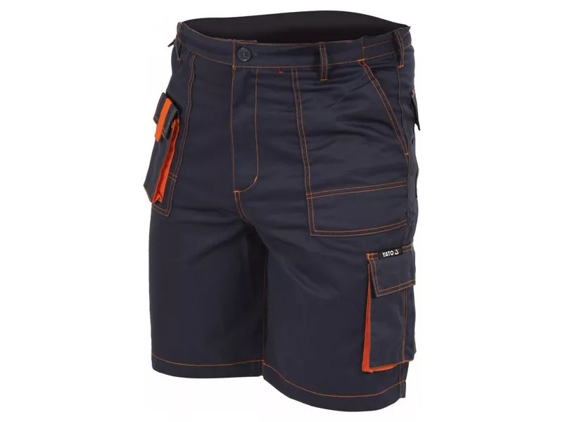 Short work pants with seven pockets, including four with a Velcro fastener. The main material is a mixture of cotton with polyester in the right proportions. This solution allows you to use the strengths of both materials, including Increased tear resistance and good air circulation. Basic data: material: 35% cotton, 65% polyester weight: 245 g/m² work organization: below the belt on the front two large pockets with a reinforced bottom on the inside with an additional layer of material and on the right side a small sewn pocket with a flap fastened with a Velcro on the left Leg a large pocket with a flap, a Velcro on the right leg, a narrow pocket, e.g. for a wallpaper knife & nbsp; On the back below the waist, two large pockets with a flap, Velcro fastened at the waist at the front, a carabiner with keys Additional information: double seams in places exposed to tear, fastened with a zipper and a large button at the waist on the waist on the sides, sewn Regulation (EU) 2016/425 for work clothing and category.