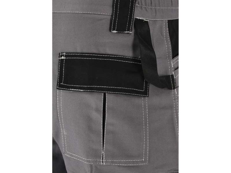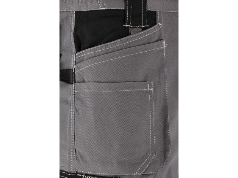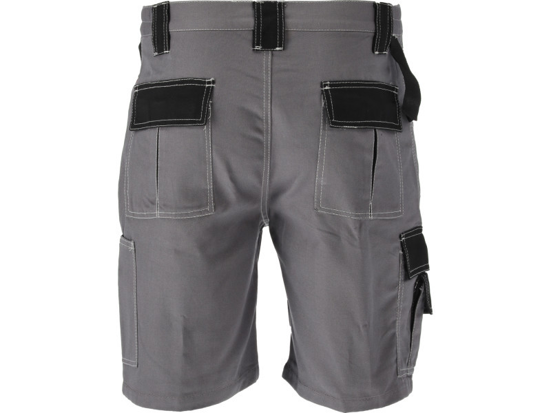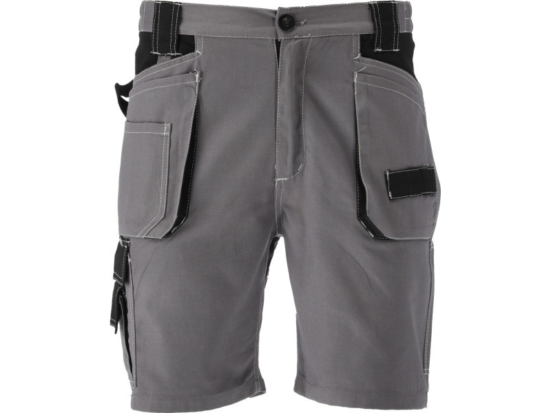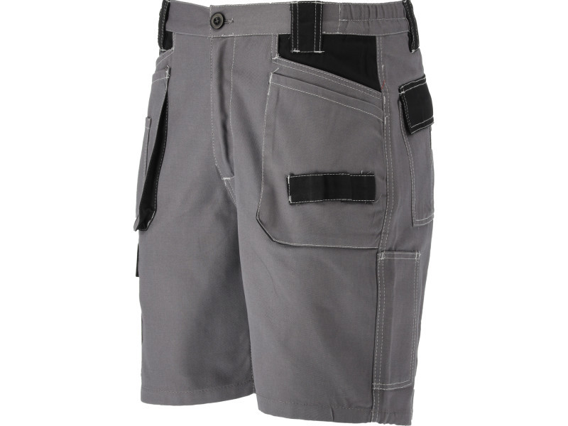 Short work trousers with ten pockets, including four with Velcro closures and numerous textile loops for essential tools.