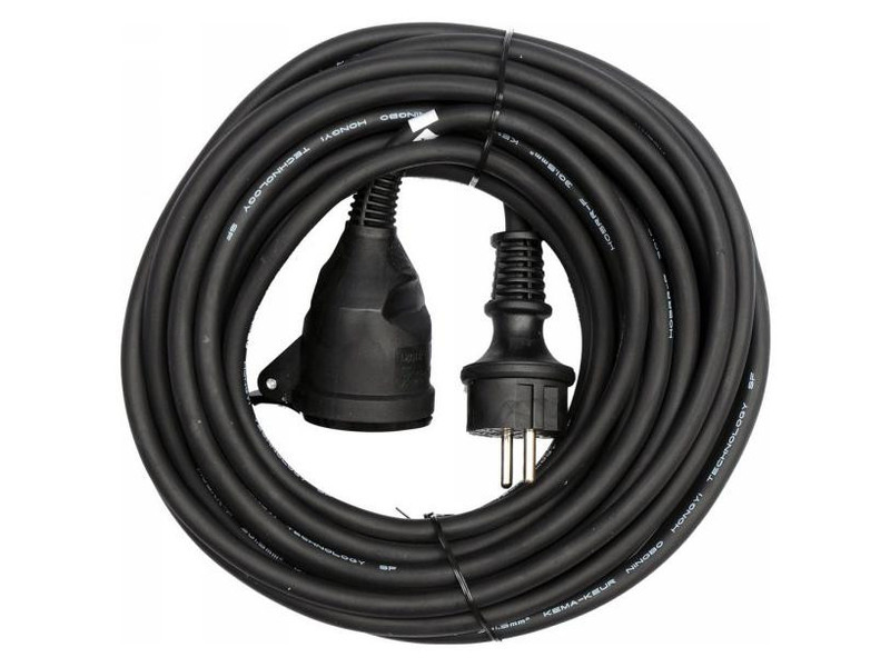 High-quality insulated extension cord with a length of 20 m. The wire is made of 3 copper conductors of 1.5 mm² each. Such a wire cross-section makes it possible to connect to these extension cords equipment often used on the construction site, in the workshop or manufacturing plant.