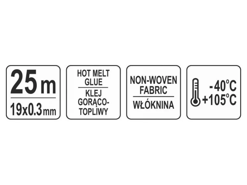 Pota tape for 15mm cable beams by Yato YT-81501. The tape is intended for organizing and protecting beams of electrical cables. Particularly useful for wrapping bundles in places exposed to abrasions and low and high temperatures. • made of durable non -woven fabric, resistant to abrasion • the ability to cut anywhere allows you to adjust the length of the tape to the diameter of the wires • Easy joining thanks to the moisture resistant glue used • Possibility of reusable use at a temperature from -40 ° C to +105 ° C • black Neutral color.