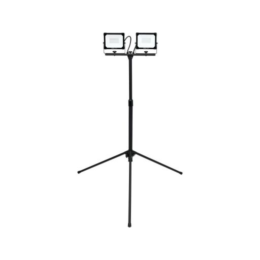 Two flat floodlights with efficient SMD LEDs placed on a stable, adjustable stand.