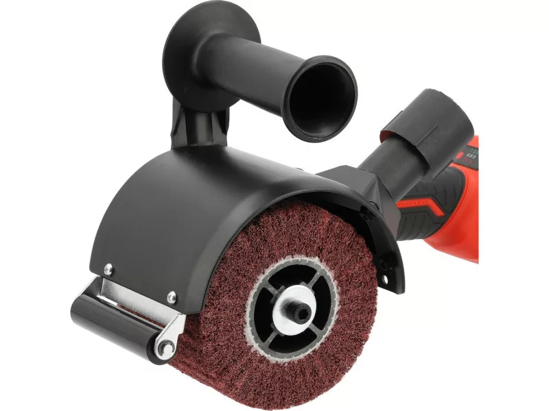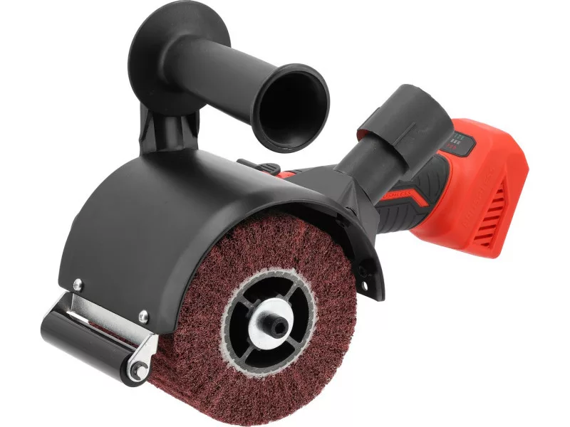 The cordless sander is designed for surface treatment using drum brushes, allowing for sanding, cleaning, and structuring of materials. Depending on the brush used, the tool is effective when working with wood, metal, and selected synthetic materials. The device enables the removal of paint coatings, prepares surfaces for further processing, and also creates a satin or aging effect on the material. It is a practical tool for renovation, carpentry, and locksmithing tasks, allowing for quick surface preparation and achieving a decorative material structure.