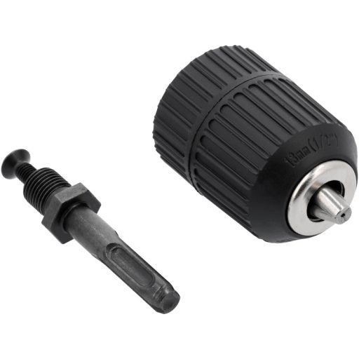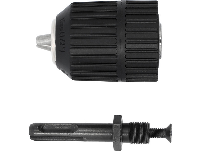 Self-locking drill chuck with SDS-Plus adapter with key ensures perfect drilling centrality and optimal force transmission when working with a drill or hammer drill. It guarantees a secure, stable grip on drill bits, even under heavy loads. The use of the key increases the clamping force, reducing the risk of the tool slipping during work.