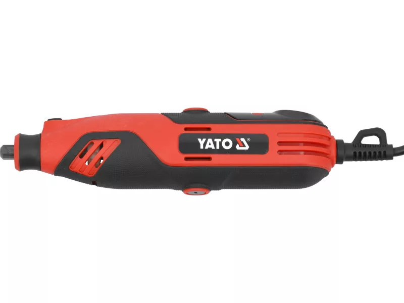 A handy mains-powered tool that allows precise machining of different materials. Used for drilling, grinding, milling, engraving, polishing, cleaning. It has six speed settings, from 10,000 to 35,000 rpm, allowing you to adapt the speed to suit specific tasks. The speed is electronically controlled. The toolholder is self-centring. LED lighting makes it easier to perform precision tasks. 130 Watt power. Included with the mini sander is an additional tool holder on a flexible boom, a spanner for the tool holder, a protective cover, a boom spindle lock, a router attachment and 82 abrasive accessories.