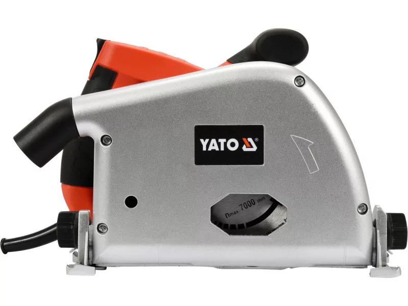 The plunge-cutting machine has a built-in thermal switch and is designed to work with a 1.4m long guide bar, part number YT-82169. The inspection window located on the motor side allows visibility of the cutting edge during work that forces cutting, for example, against a vertical wall (min. Distance of 16mm from the edge of the vertical piece).