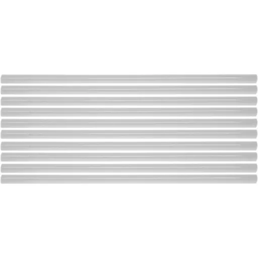 Hot-melt adhesive colorless with diameter 7.2 mm and length 200 mm. The package includes 10 glue pads.
