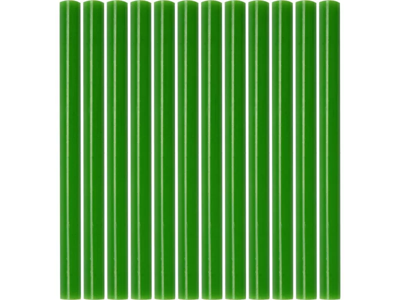 Hot-melt glue green Yato with diameter 7.2 mm and length 100 mm. The package contains 12 pieces glue sticks.