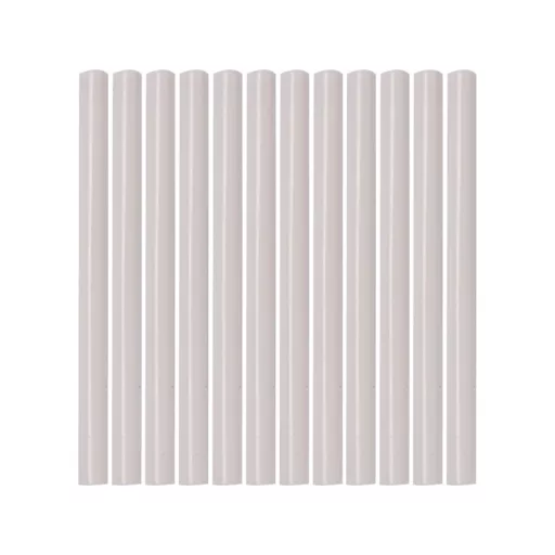 Hot melt adhesive white with diameter 7.2 mm and length 100 mm. The package contains 12 glue sticks.