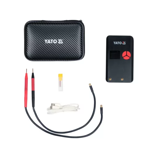 The device gives a maximum welding current of ~500 A. This is the average real current value measured over a 100 ms period. Some manufacturers quote the current parameters of the mosfets or the peak current value instead of the real welding current. From a technical data point of view, this is true, but in practice it often becomes impossible to achieve a proper weld with 0.15 mm nickel-plated tape. YATO's portable spot-welding machine makes it possible to carry out correct welds using 8 mm wide, 0.20 mm thick nickel-plated tape and 8 mm wide, 0.15 mm thick nickel-plated tape.