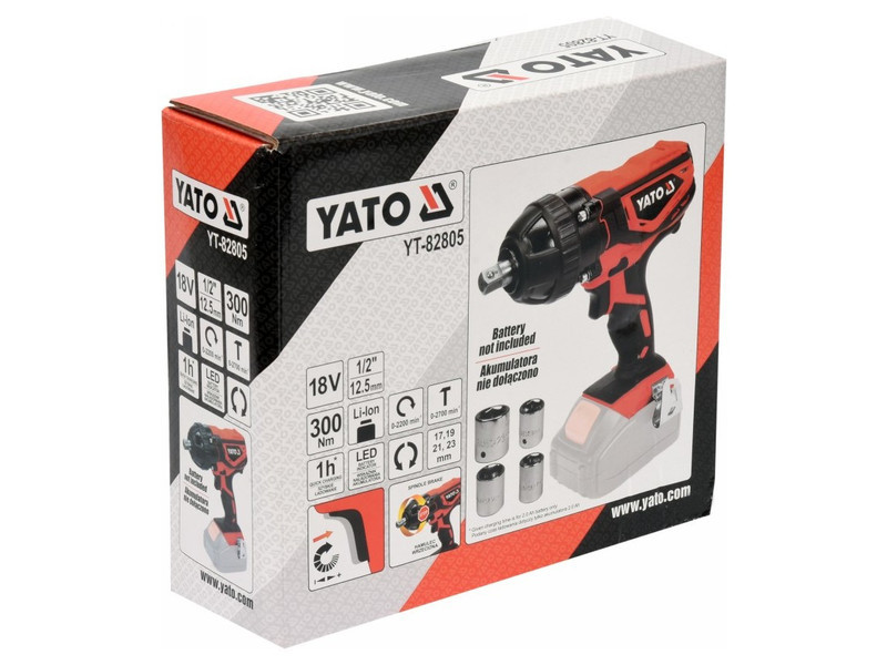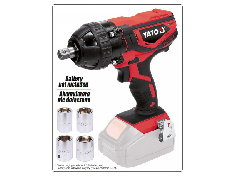 | Set includes | impact wrench, impact socket x4 (17 mm, 19 mm, 21 mm, 23 mm) |