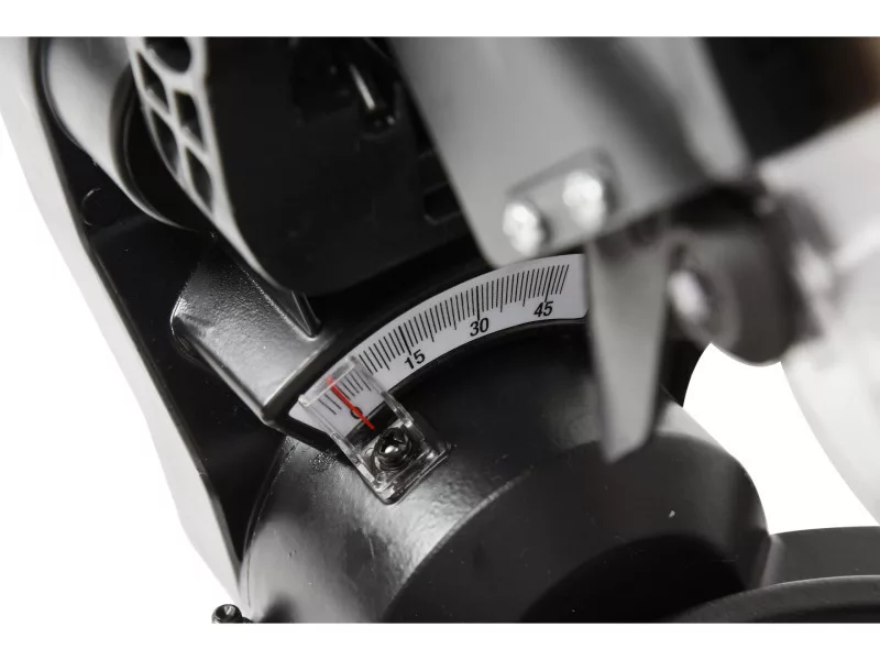 Cutting angle: it is possible to rotate the head within +/- 45 degrees. To make it easier to set the angle of the head, the bevel has a scale with a ratchet that allows easy setting of the head in the most common angles (0; 15; 22.5; 31.6; 45 degrees).