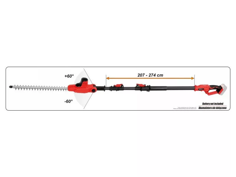 The long reach telescopic hedge trimmer allows you to easily form tall and wide hedges and work comfortably from a distance without damaging flower beds. Adjustable head angle allows you to give your shrubs the perfect geometry.