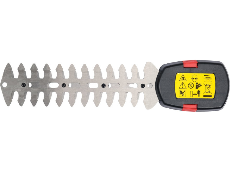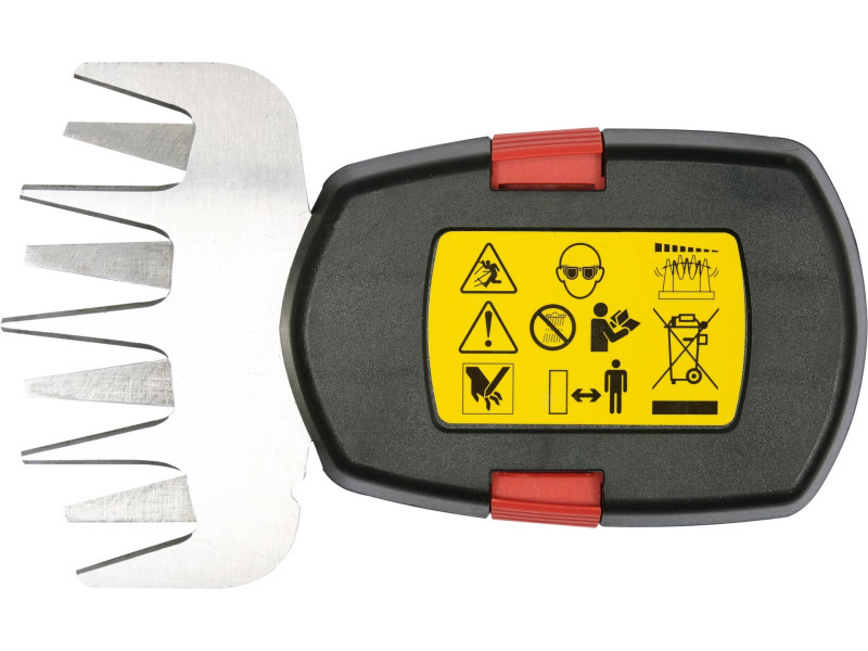 Lightweight battery-powered grass shears. Equipped with two types of blades: frontal for grass and lateral for trimming bushes. The blades are made of high-quality carbon steel, sharpened, and characterized by high resistance to corrosion.