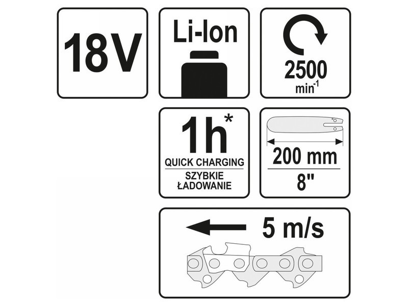 | Guide bar length | 8" (200 mm) |