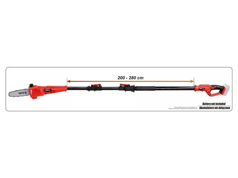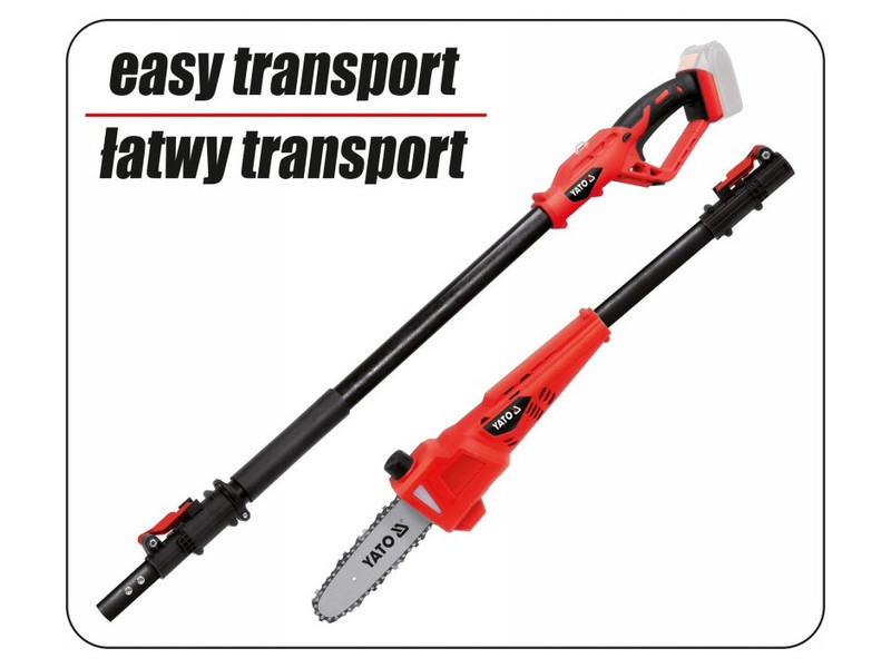 The saw on a telescopic boom makes it possible to take care of trees and tall bushes without using a ladder. It is suitable for cutting at a level of 3-5 metersów, making branch removal safe and convenient. Light weight and proper balance ensure comfortable work and cutting of branches even of considerable thickness without chain wedging and recoil.