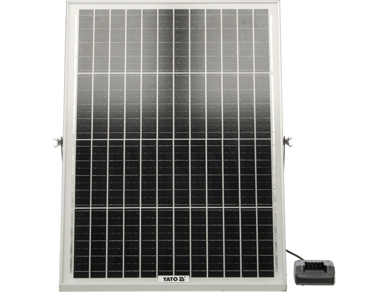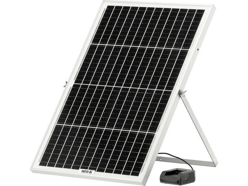 YATO 18V system battery charger that plugs into a car lighter socket or 50W photovoltaic cell. Great for camping, garden allotments, boats and anywhere where there is no access to the mains. The device also allows mobile devices to be charged via USB cable using the YATO system's 18-volt battery, cigarette lighter socket or solar panel.