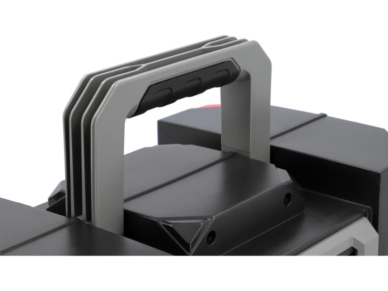 Portable battery power station with a capacity of 917 Wh with UPS function. It can handle eleven devices at once. Built-in bidirectional AC converter with pure sine wave with a rated power of 1200 W (peak up to 2400 W) will work as an emergency power source for, among others, a pump and central heating boiler controller, router, desktop computer, most power tools, and many other devices. Six USB ports, including two USB-A in Q.C technology max 18 W, two USB-C in PD 60 W and PD100 W technology, will power and recharge your smartphone, tablet, or laptop multiple times. The 12 V socket will successfully power a camping fridge or dedicated lighting. Two 12 V output jack sockets can be used, for example, to maintain voltage in the car while charging the battery.
