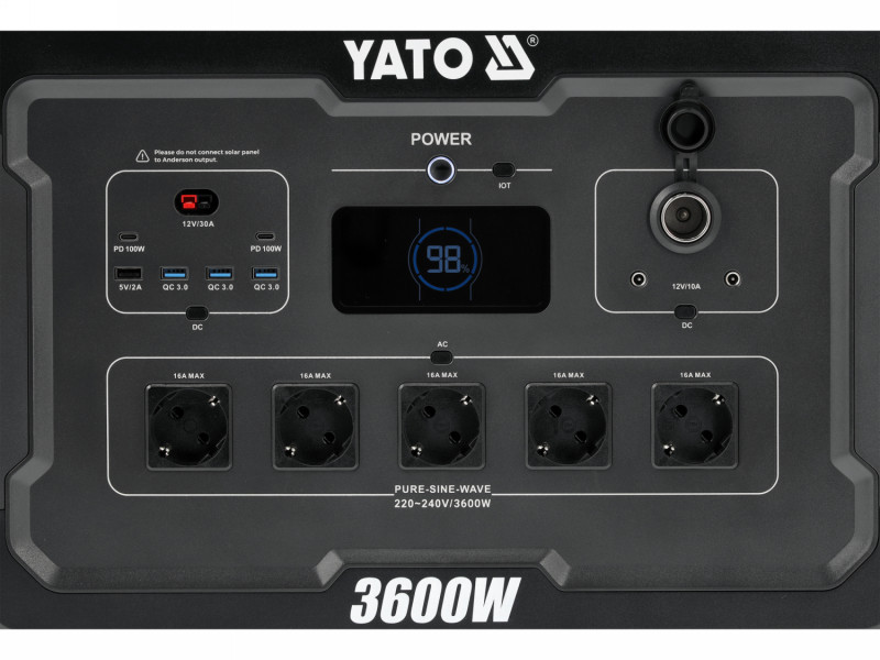Portable, advanced YATO power station with a very large capacity of 3072 Wh and an output power of 3600 W, equipped with a modern LiFePO4 battery, is designed as a stable and long-term source of energy for demanding applications. Lithium-iron-phosphate technology provides above-average cell life, high resistance to deep discharges, and maintains constant operating parameters, even under prolonged and intense load. Such a large energy reserve allows powering both consumer electronics and lighting, as well as power tools and selected household appliances, without the need for frequent recharging.