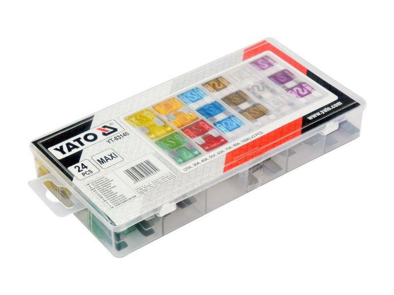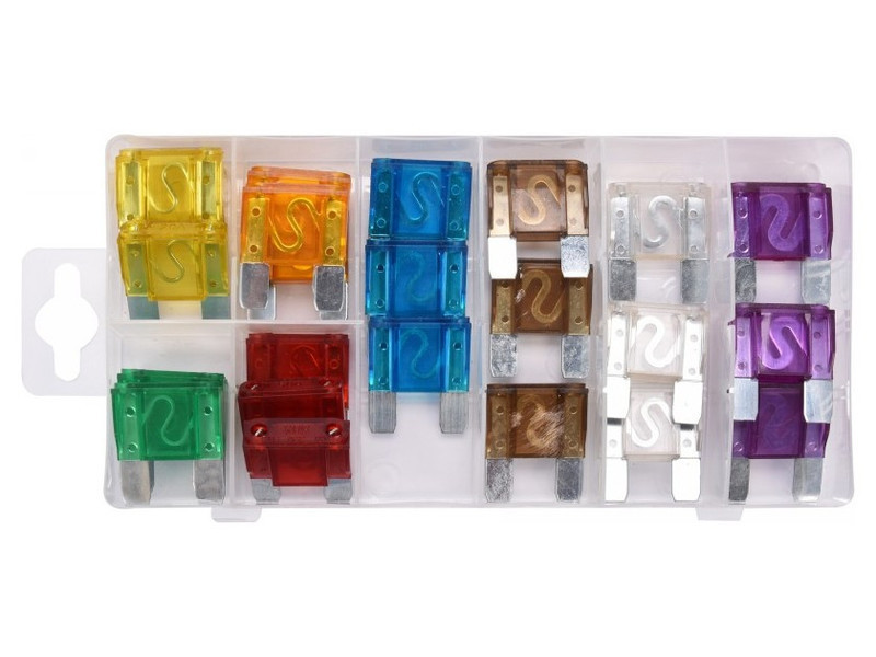 Sets of plate fusesós to protect electrical systems in cars from damage caused by excessive current. Used for compressorsów, electric pumps, rectifiersów, socket distributors, among others. Packaged in handy cases.