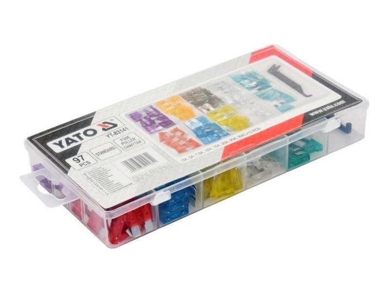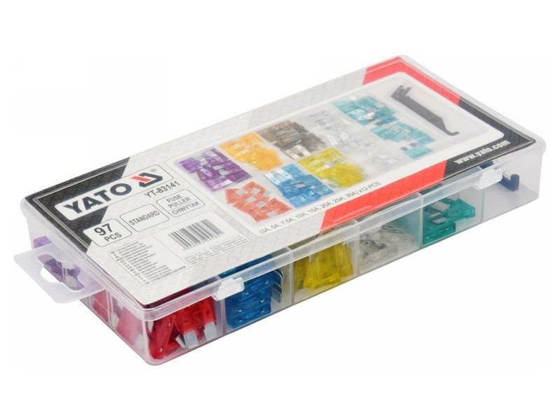 Fuse sets & oacute; in protecting electrical installations in cars against damage caused by excessive current. Used, among others to the compressor & oacute; in, electric pumps, rectifier & oacute; in, socket distributors. Packed in a handy cassette. The set contains a gripper and after 12 pieces fuse & oacute; in: 3 A5 A7.5 A10 A15 A20 A25 A30 A