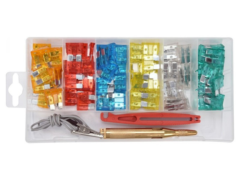| Set includes | fuses x90 (5A x15, 10A x15, 15A x15, 20A x15, 25A x15, 30A x15), voltage tester 6-24V, gripper |