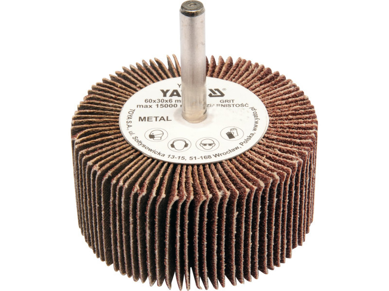 The working abrasive element is flaps of abrasive cloth, permanently fixed to a steel mandrel.