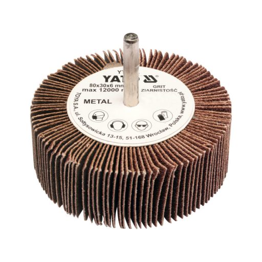 The working abrasive element is flaps of abrasive cloth, permanently fixed to a steel mandrel.