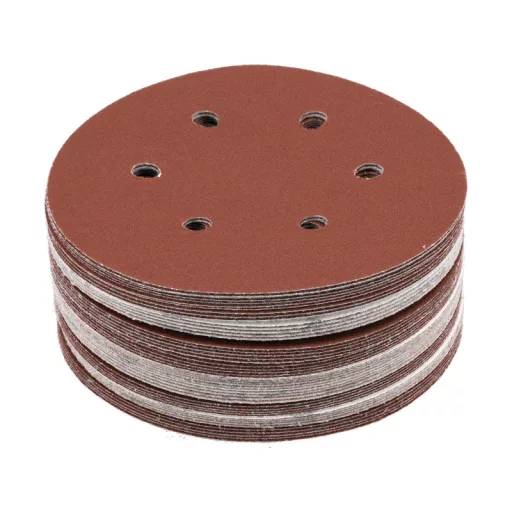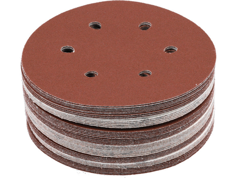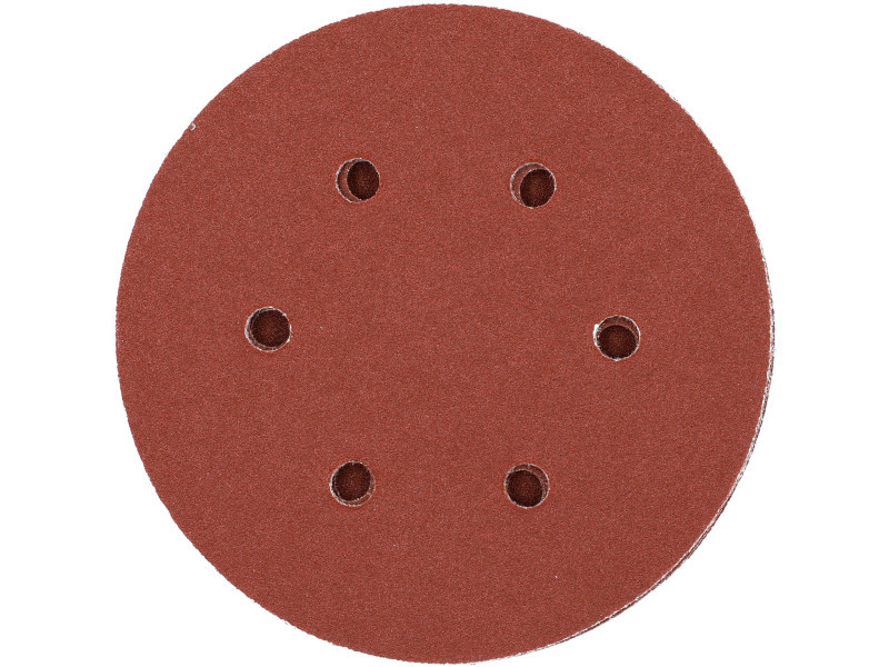 6 HOLE, 150MM DIAMeter, 120 grit, MATERIAL: ALUMINIUM OXIDE, BACK: HOOK FASTENER,50PCS, BOND: EPOXY RESIN, EMBOSSING: SEMI-OPEN. SANDING DISCS WITH SIX HOLES ARE DESIGNED FOR SANDING PAINT, VARNISH, WOOD AND METAL SURFACES. CO-OPERATE WITH OSCILLATION AND MIMMILLAR SANDERS YT-09739, YT-09740.