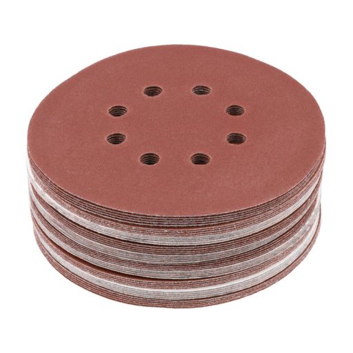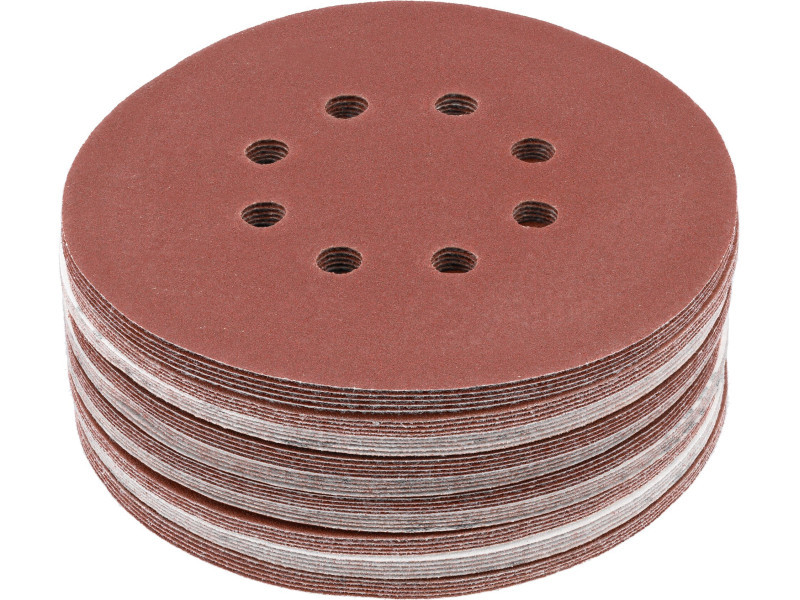8 HOLE, 150MM DIAMETER, grit 150, MATERIAL: ALUMINIUM OXIDE, BACK: HOOK FASTENER,50PCS, BOND: EPOXY RESIN, EMBOSSING: SEMI-OPEN. SIX-HOLE ABRASIVE DISCS ARE DESIGNED FOR SANDING PAINT, VARNISH, WOOD AND METAL SURFACES. CO-OPERATE WITH OSCILLARY AND MIMMILLARY SANDERS YT-82207, YT-82206