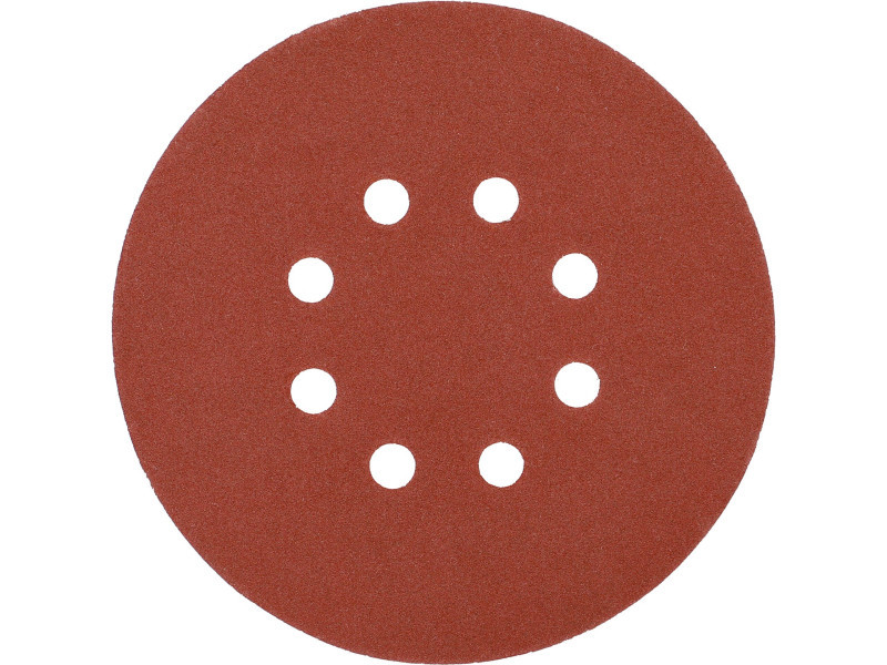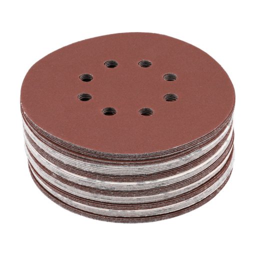 8 HOLE, 150MM DIAMeter, grit 220, MATERIAL: ALUMINIUM OXIDE, BACK: HOOK FASTENER,50PCS, BOND: EPOXY RESIN, EMBOSSING: SEMI-OPEN. SIX-HOLE ABRASIVE DISCS ARE DESIGNED FOR SANDING PAINT, VARNISH, WOOD AND METAL SURFACES. CO-OPERATE WITH OSCILLARY AND MIMMILLARY SANDERS YT-82207, YT-82206
