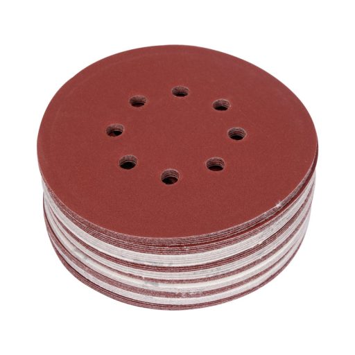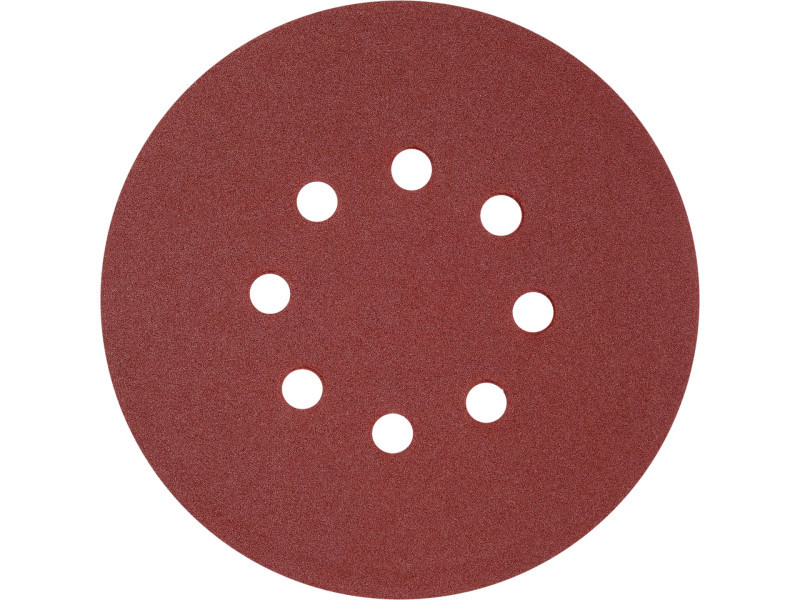 8 HOLE, 150MM DIAMETER, grit 240, MATERIAL: ALUMINIUM OXIDE, BACK: HOOK FASTENER,50PCS, BOND: EPOXY RESIN, EMBOSSING: SEMI-OPEN. SIX-HOLE ABRASIVE DISCS ARE DESIGNED FOR SANDING PAINT, VARNISH, WOOD AND METAL SURFACES. CO-OPERATE WITH OSCILLARY AND MIMMILLARY SANDERS YT-82207, YT-82206