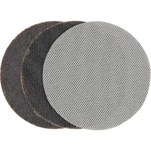 Sanding mesh discs with dust-permeable mesh velour. Designed for sanding hard plastering mortars, such as smooths, gypsumós, plasterós.