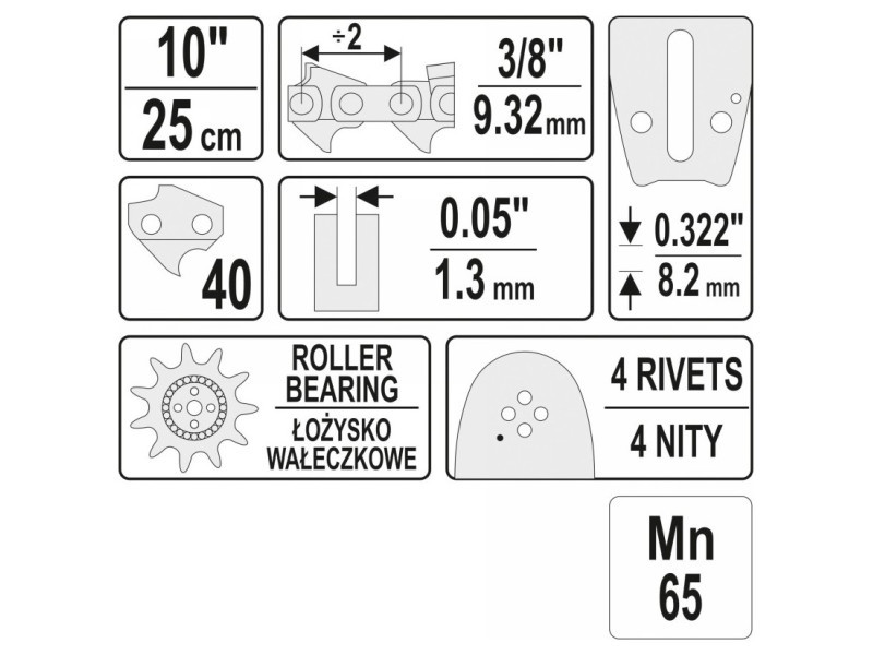 | Chain pitch | 3/8" (9.52 mm) |
