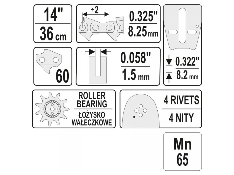 Length 14", 60 links, pitch 0.325", width 0.058" (1.5 mm).