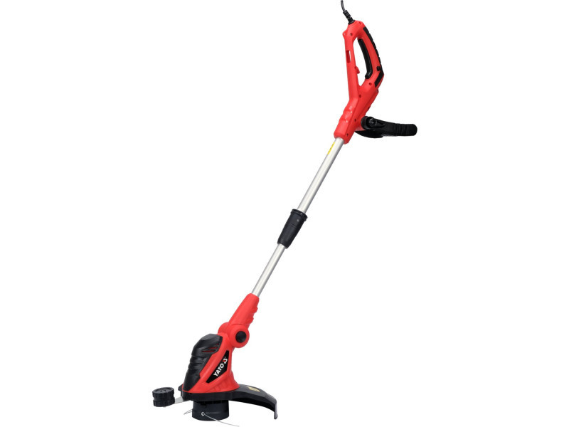 Trimmer for lawn care and edging. For the user's comfort, the length of the device is telescopically adjustable. In addition, the user can adjust the angle of the handle to suit his needs. The cutting head is adjustable in 5 positions. The telescopic rod design allows the head to rotate 180 degrees, making it easy to cut along the edges of lawns. A support wheel also helps to guide the cut evenly. The TAP & GO cutting head automatically extends the line when pressed to the ground.
