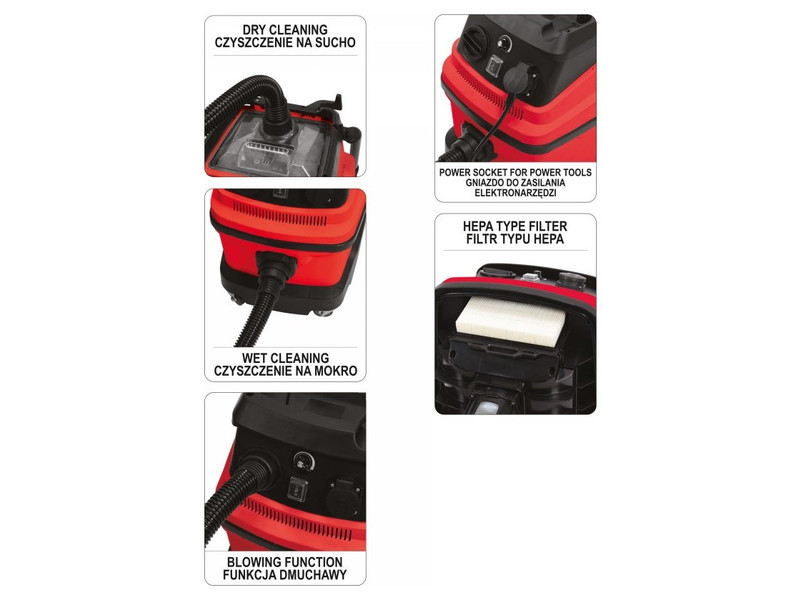 Designed for use at construction sites, carpentry and paint shops. Meets the highest standards in removing fine dirt, such as gypsum and dust from hardwoods (oak, ash).