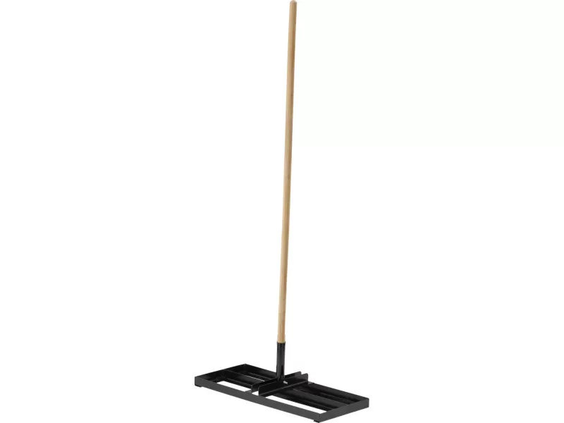 Handheld leveler for leveling terrain such as soil for lawn or for garden arrangements. It has applications for leveling the foundation for small garden landscaping, surfaces in paving work, loose surface on a horse riding arena or playing fields for beach games.